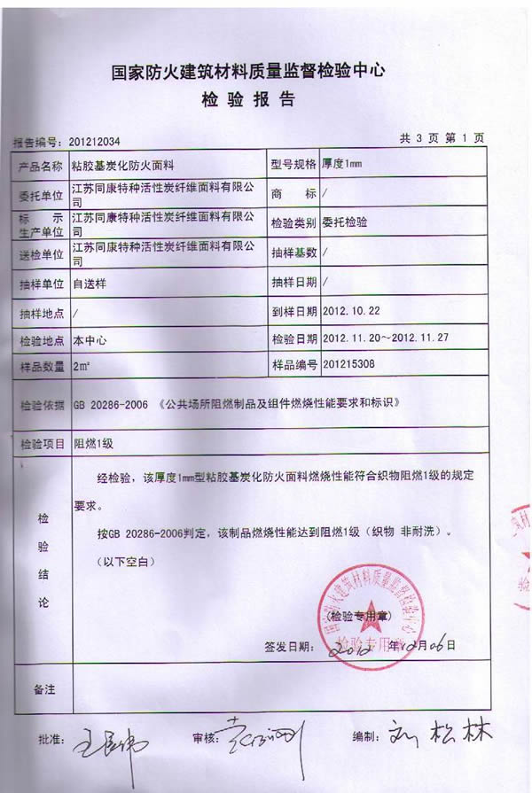 江蘇同康特種活性炭纖維面料有限公司