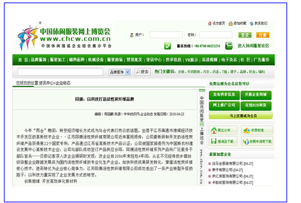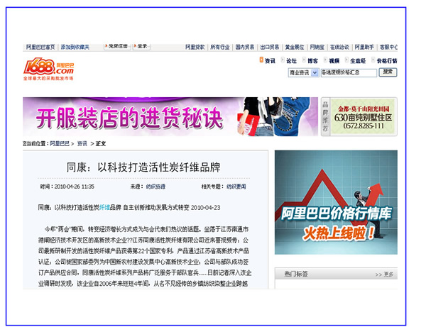 阿里巴巴、中華紡織網(wǎng)——同康:以科技打造活性碳纖維品牌