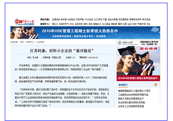 中國化工報、中國建筑新聞網——江蘇同康:材料小企業(yè)的“新興情結”