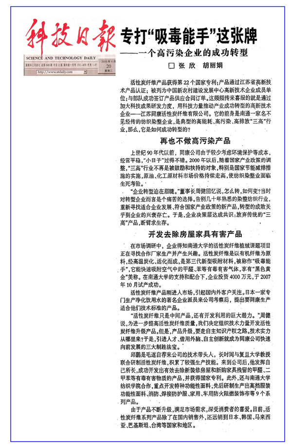 科技日報——專打“吸毒能手”這張牌——一個高污染企業(yè)的成功轉(zhuǎn)型