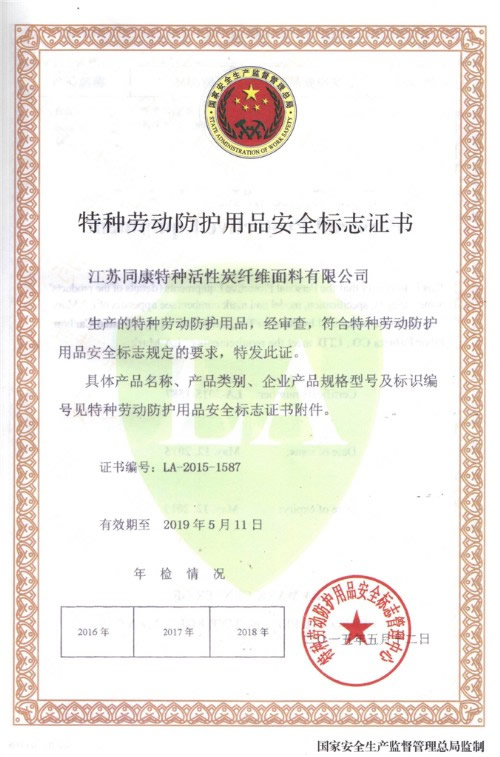 我公司生產(chǎn)的KN95口罩通過了特種勞動(dòng)防護(hù)用品安全管理中心的嚴(yán)格審核,并獲得特種勞動(dòng)防護(hù)用品安全標(biāo)志證書。