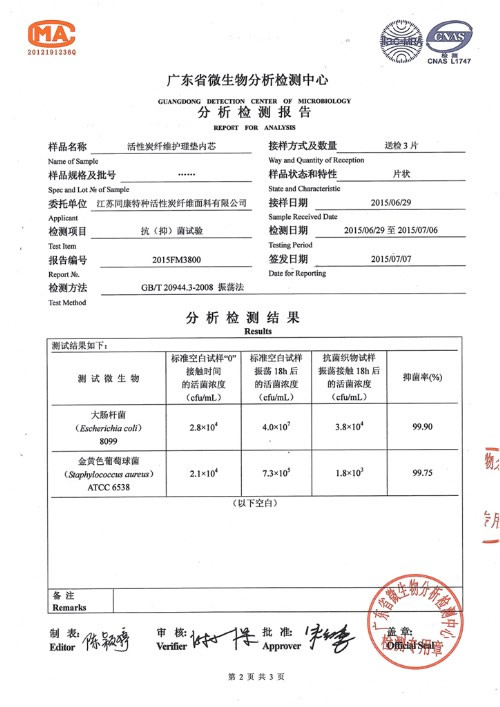 2、高效防菌抑菌,抑制十多種常見(jiàn)病菌,經(jīng)國(guó)家權(quán)威機(jī)構(gòu)檢測(cè)對(duì)大腸桿菌和金黃色葡萄球菌的抗菌率達(dá)到99%以上。